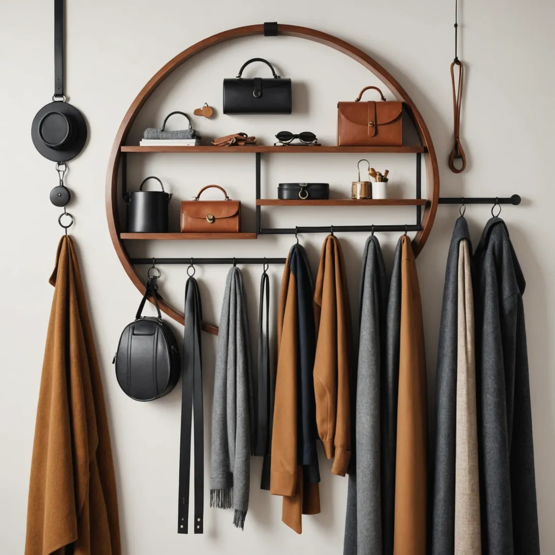 - Использование круглых вешалок для ремней и шарфов для сохранения порядка.